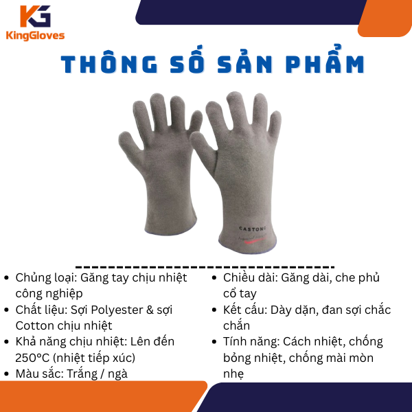 THÔNG SỐ KỸ THUẬT GĂNG TAY CHỊU NHIỆT SỢI POLYESTER VÀ SỢI COTTON CASTONG PJJJ35-33 CHỊU NHIỆT 250 ĐỘ