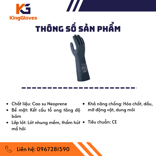 THÔNG SỐ KỸ THUẬT CỦA GĂNG TAY CHỐNG HÓA CHẤT NEOPRENE 30CM EXCIA CE118