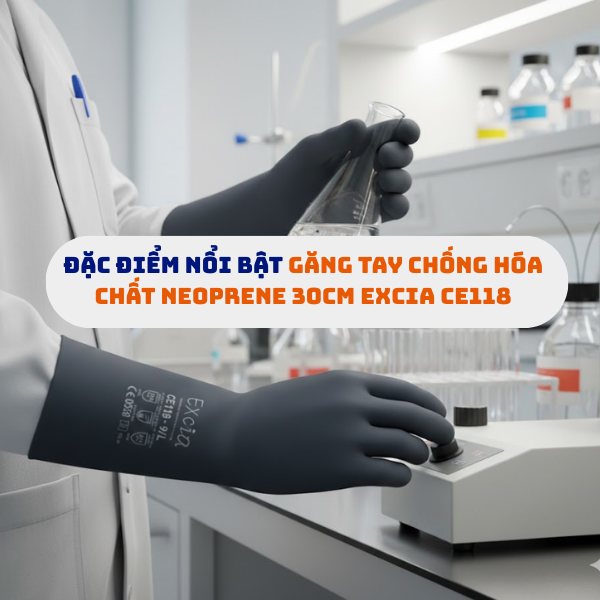 Điểm mạnh nhất của EXCIA CE118 nằm ở chất liệu Neoprene cao cấp. Khác với các loại cao su thông thường, Neoprene có khả năng kháng lại phổ rộng các loại hóa chất từ axit, kiềm, dung môi cho đến cồn và mỡ động vật. Đặc biệt, vật liệu này duy trì độ dẻo dai và tính ổn định tốt ngay cả trong môi trường có biến động nhiệt độ, giúp găng tay không bị giòn gãy hay biến tính nhanh chóng, bảo vệ an toàn tối đa cho da tay.