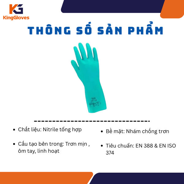 • Tiêu chuẩn chất lượng: EN 374, EN 388