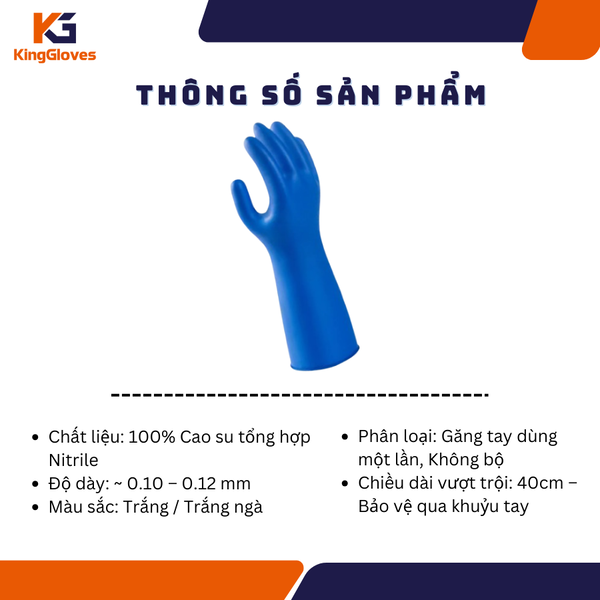 Găng tay Nitrile Excia 40cm 9000 là giải pháp bảo hộ dùng một lần chuyên dụng mang tính đột phá với thiết kế chiều dài lên tới 40cm. Vượt ra khỏi giới hạn bảo vệ bàn tay thông thường, sản phẩm tạo ra một lớp màng chắn kiên cố bao phủ toàn bộ cẳng tay người lao động, chống lại các rủi ro văng bắn hóa chất và sự thâm nhập của chất lỏng trong các môi trường làm việc ngập nước.